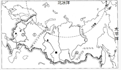 (3)读图可知,①是乌拉尔山脉;②伏尔加河;④是贝加尔湖;