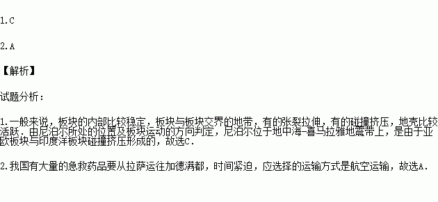 2.地震发生后我国有大量的急救药品要从拉萨运往加德满都应选择的运输方式是( )