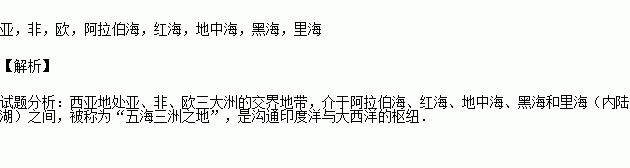 西亚处在联系____________、____________、____________三大洲,沟通____________洋和____________洋的枢纽地位;周围有五个海____________、____________、____________、____________、____________所以西亚被称为“两洋三洲五海之地”.