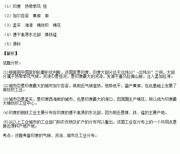 (5)该国工业在分布上的一个共同点是接近________产地。