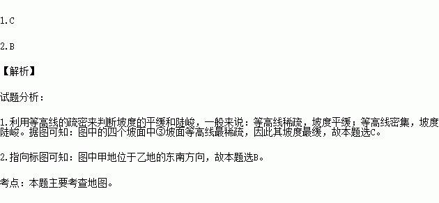 1.图中①②③④四个坡面中坡度最缓的是( )