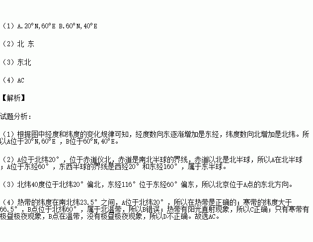 (1)判断A、B点的经纬度:A:_________________,B: 。