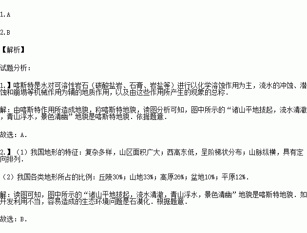 “诸山平地拨起,流水清澈,青山浮水,景色清幽”是中国某著名风景区的真实写照.据些,完成下列小题