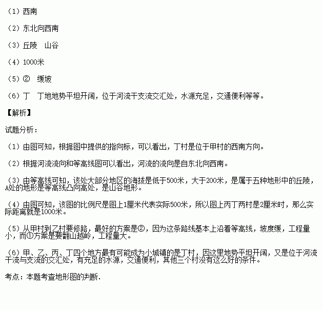 (1)丁村位于甲村的________方向。