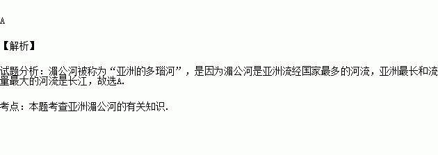 湄公河被称为“亚洲的多瑙河”,此称号说明湄公河是 ( )