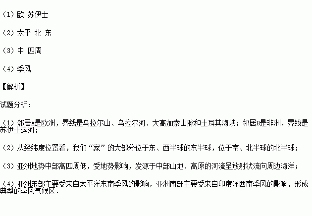 亚洲是我们的“家”,对自己的“家”你了解多少?读图完成下列问题。