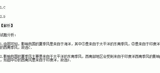 1.影响我国的夏季风主要是①和②,它们分别是