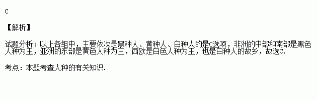下列各组地区中,主要依次是黑种人、黄种人、白种人的是
