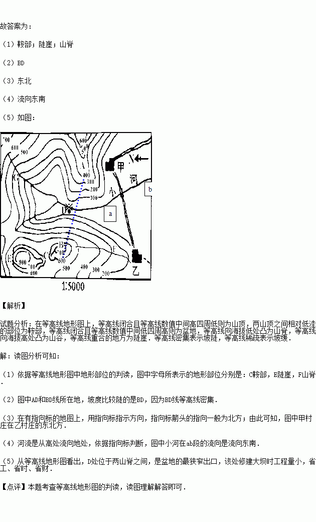 (5)该地区用水很紧张,为此决定修一座水库,请你在图中最适合建大坝的位置上标注“※”.