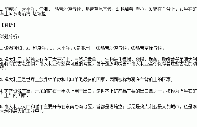 4.澳大利亚是个矿产资源丰富的国家,开采的矿石一半以上用于出口,被称为“ ”的国家。