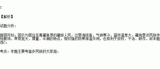 下图为我国某少数民族传统服饰图片,该民族传统服饰宽大、厚重、半肩,反应了居住地为( )