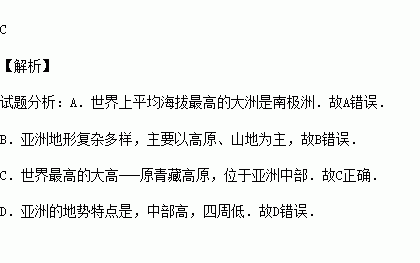 A.是世界上平均海拔最高的大洲 B.地形以平原为主