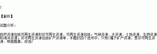 A、矿产资源 B、森林资源 C、土地资源 D、水资源