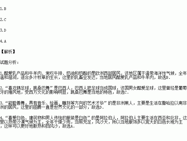 A.阿拉伯人 B.欧洲西部居民 C.巴西人 D.非洲黑人
