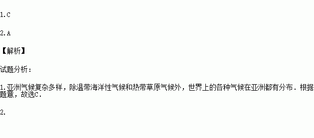2.在亚洲分布面积最广的气候类型是( )
