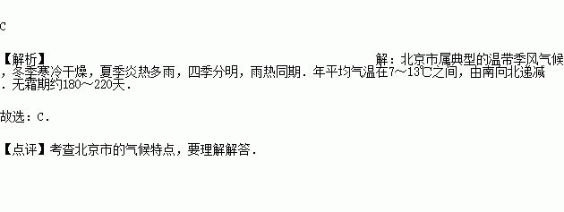 关于我国首都北京(40°N,116°E)位置的叙述正确的是( )