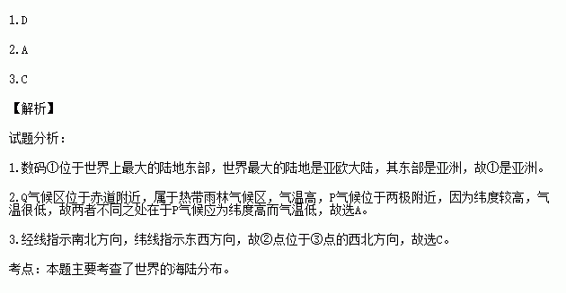 1.图中数码①所在地所属大洲(或大洋)名称是