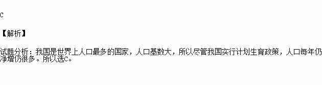 尽管我国实行计划生育政策,人口每年仍净增加1500万左右,其主要原因是( )