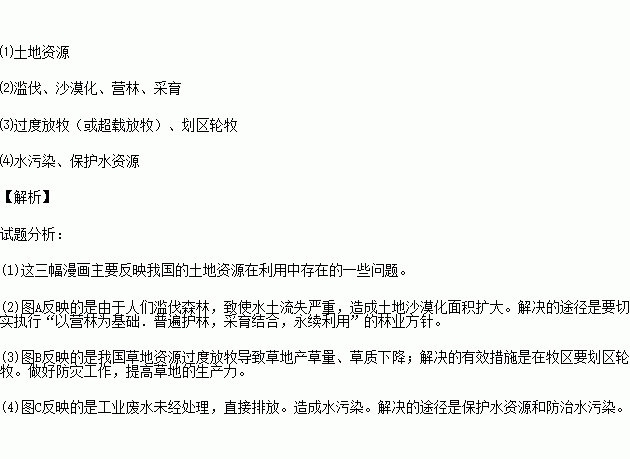 (1)这三幅漫画主要反映我国的____________在利用中存在的一些问题。