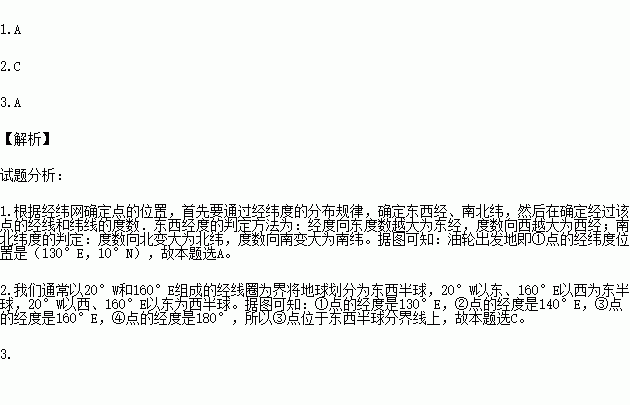 2.油轮经过的四个地点中位于东西半球分界线上的是