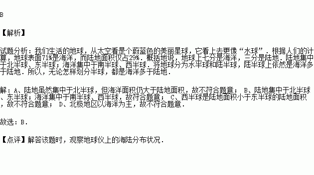 A.北半球的陆地面积大于海洋面积