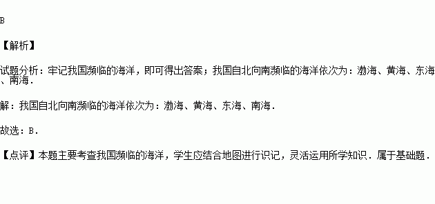 A.渤海、东海、黄海、南海 B.渤海、黄海、东海、南海