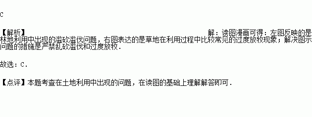 A.漫画揭示的主要问题是乱砍滥伐和鼓励放牧