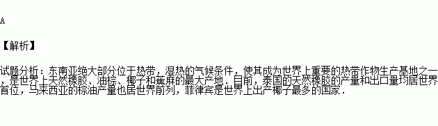 ①橡胶—菲律宾 ②蕉麻—马来西亚 ③棕油—马来西亚 ④橡胶—泰国 ⑤蕉麻—菲律宾 ⑥棕油—印度尼西亚