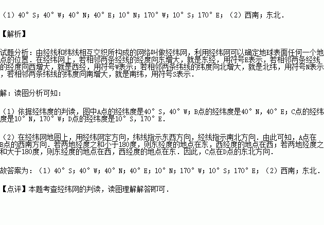 (1)写出A、B、C、D的经纬度: