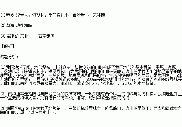 (1)F是 (山脉)。此山脉以南的河流的水文特征是 。