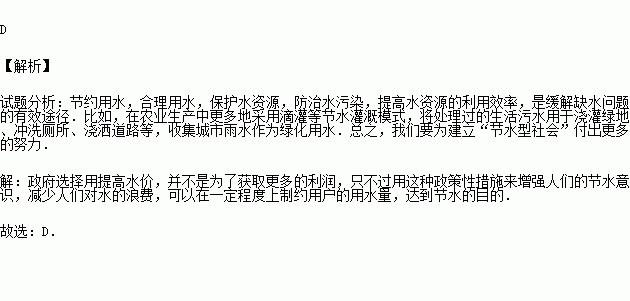 D.运用经济手段,增强节水意识,减少浪费