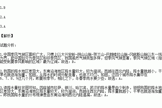 C.冬、夏季风均能到达的地区 D.冬季风难以到达的地区