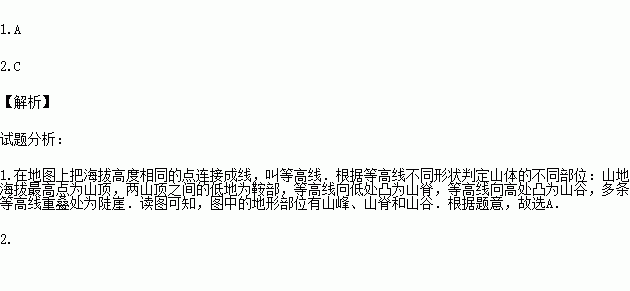 A.陡崖 B.山峰 C.山脊 D.山谷