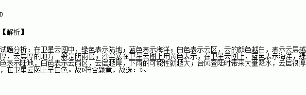 2011年8月30日下午至夜间,我国的卫星云图上,福建沿海呈现出何种颜色,显示出第11号热带风暴“南玛都”已经登陆 ( )