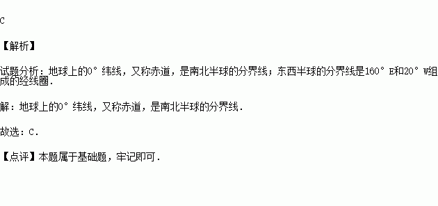 A.180°经线 B.0°纬线 C.160°E经线 D.0°经线