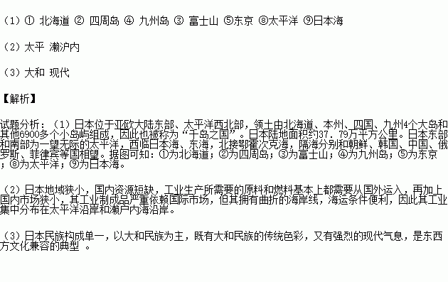 (2)日本的工业主要集中在____________洋沿岸和___________海沿岸