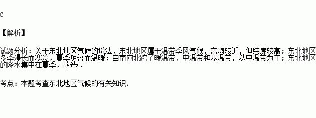 下列关于东北地区气候说法正确的是