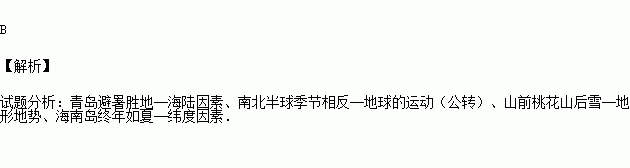 A.青岛避暑胜地——地形因素