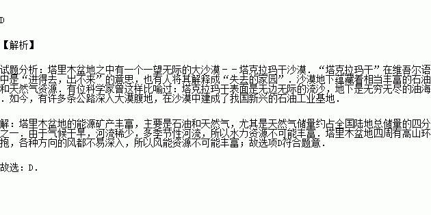 塔里木盆地既有苍茫的大漠,也有水草丰美的绿洲,蕴藏着丰富的资源.随着西部大开发的实施,塔里木盆地的明天将更加美好.塔里木盆地最丰富的矿产资源是( )