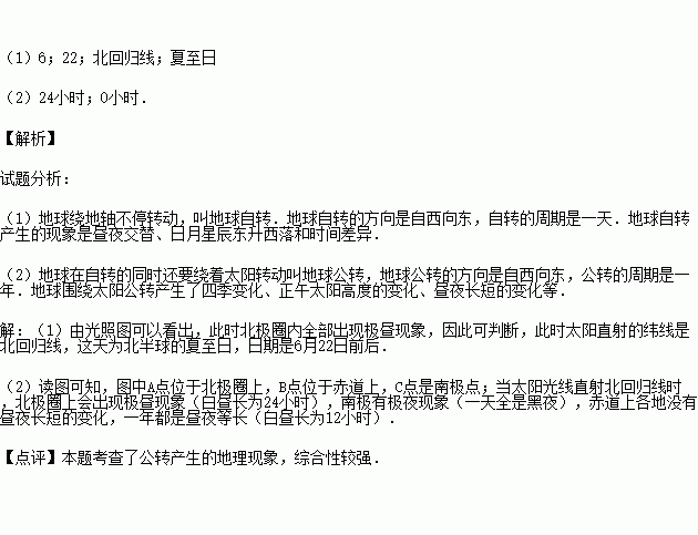 (1)这是 月 日前后的光照图,此时太阳直射在 (纬线)上,这天为北半球的 (节气);