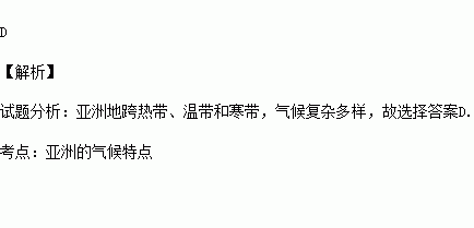 在亚洲的同一天里,有的人因炎热而纳凉,有的人因寒冷而烤火,有的人为雨水过多而发愁,有的人为长期干旱而忙碌……这些说明亚洲的气候特点是