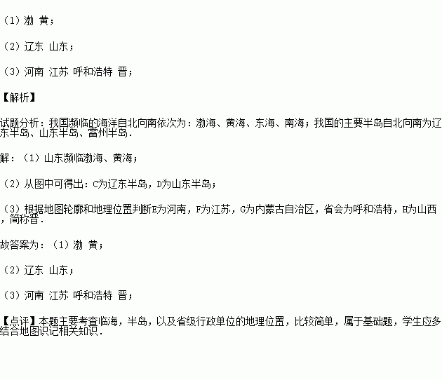 (3)省级行政单位E为 省;F为 省;G的行政中心是 ;H的简称是 .