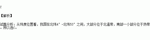 A.我国大部分位于北温带,小部分位于热带和寒带
