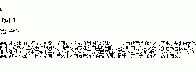 A、黑龙江 B、珠江 C、长江 D、松花江