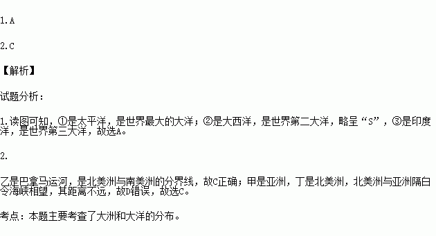 1.图中,按①、②、③的数字顺序排列,对应代表的大洋是( )