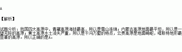 下列高原与它们各自的地形特点的连线组合,正确的是: