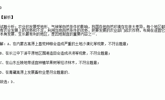 D.在青藏高原上发展畜牧业