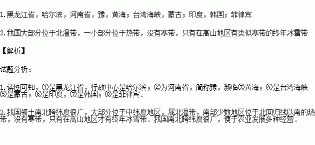 2.说出我国纬度位置的特点,并分析我国纬度位置的优越性。___________________________。