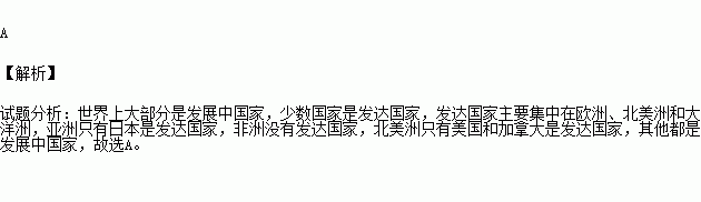 A.发达国家大多数分布在北美洲、欧洲、大洋洲