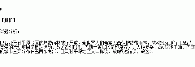 D.巴西的城市大都分布在亚马逊平原上